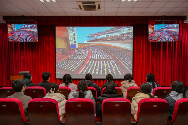 亚洲bet57365游戏大厅学生会学生骨干观看两会 侯博文摄